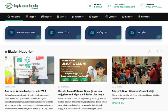 Müşteri: Hayata Anlam Katanlar Derneği Yapılış Tarihi: Ocak 2020 Verilen Hizmetler: Web Tasarım, Web Barındırma Proje: https://www.hayatader.com/